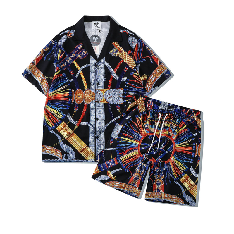 Unbeatable Quality Trendy Casual Suit With Digital Printing, High Street Indian Pattern, Loose Short Sleeved Shirt Set, Men's Summer