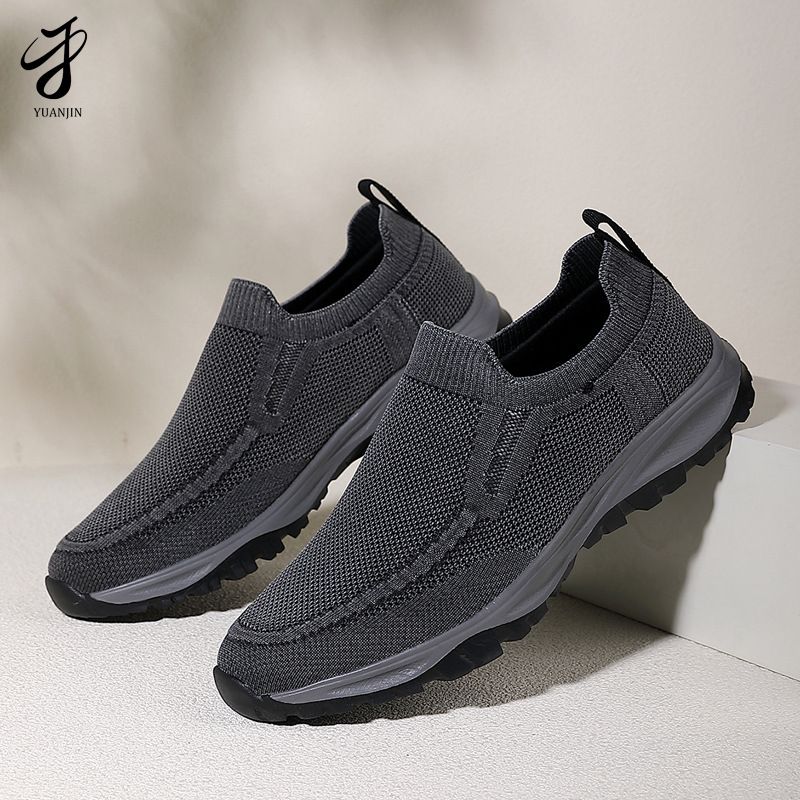 Ultra light sports shoes round toe summer style washed fly woven shoes men's mesh breathable casual shoes summer men's shoes
