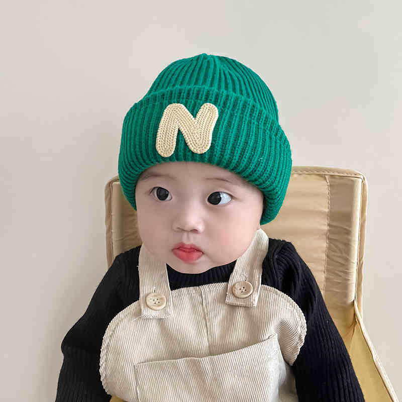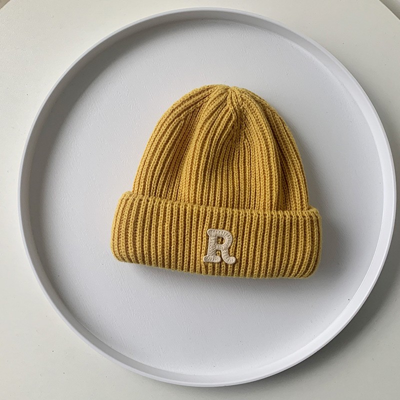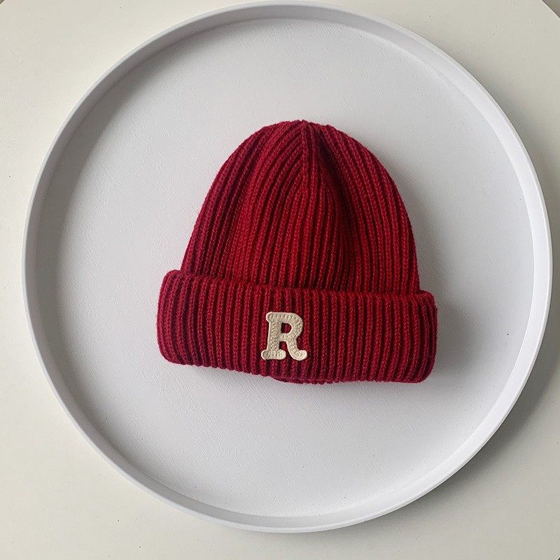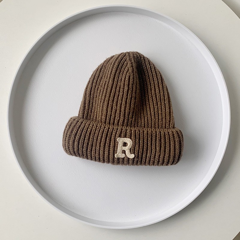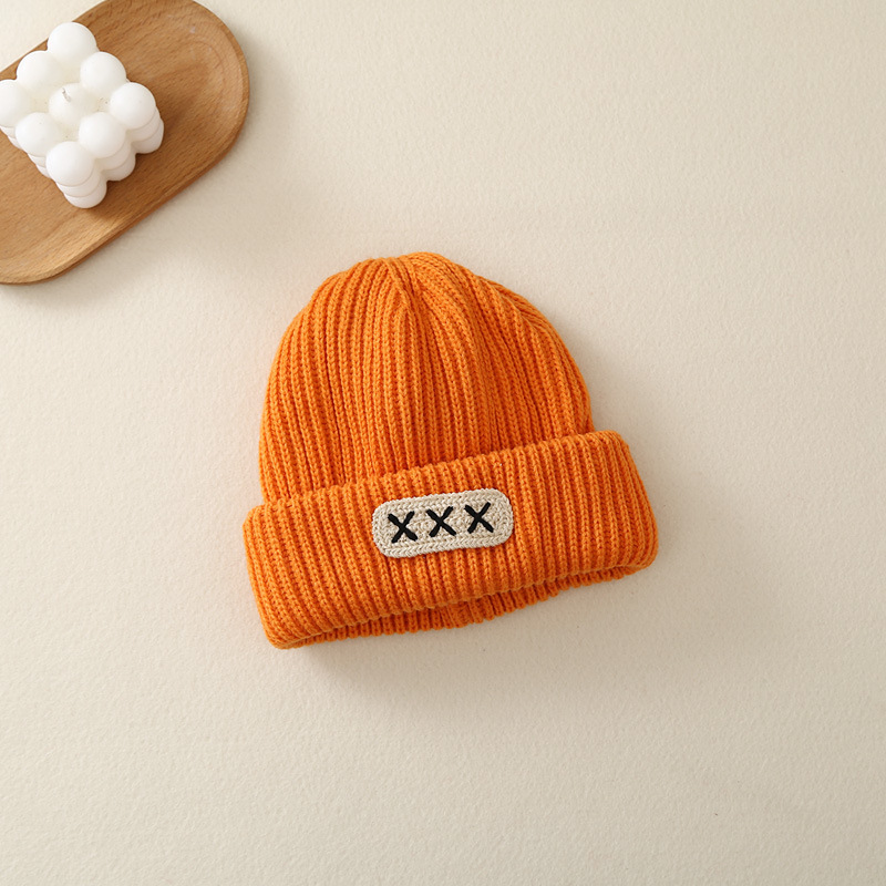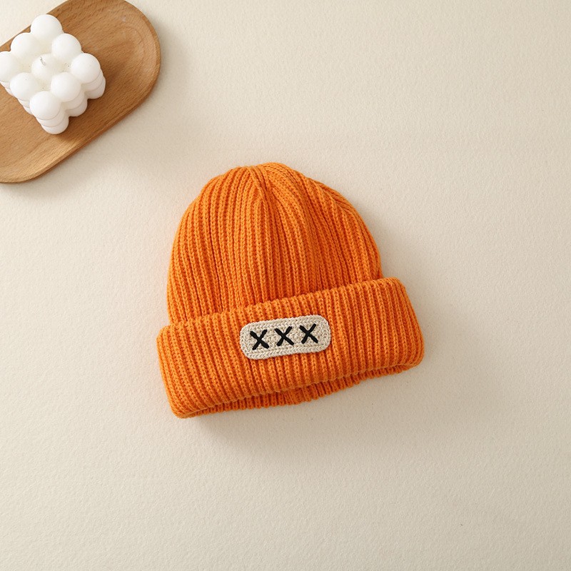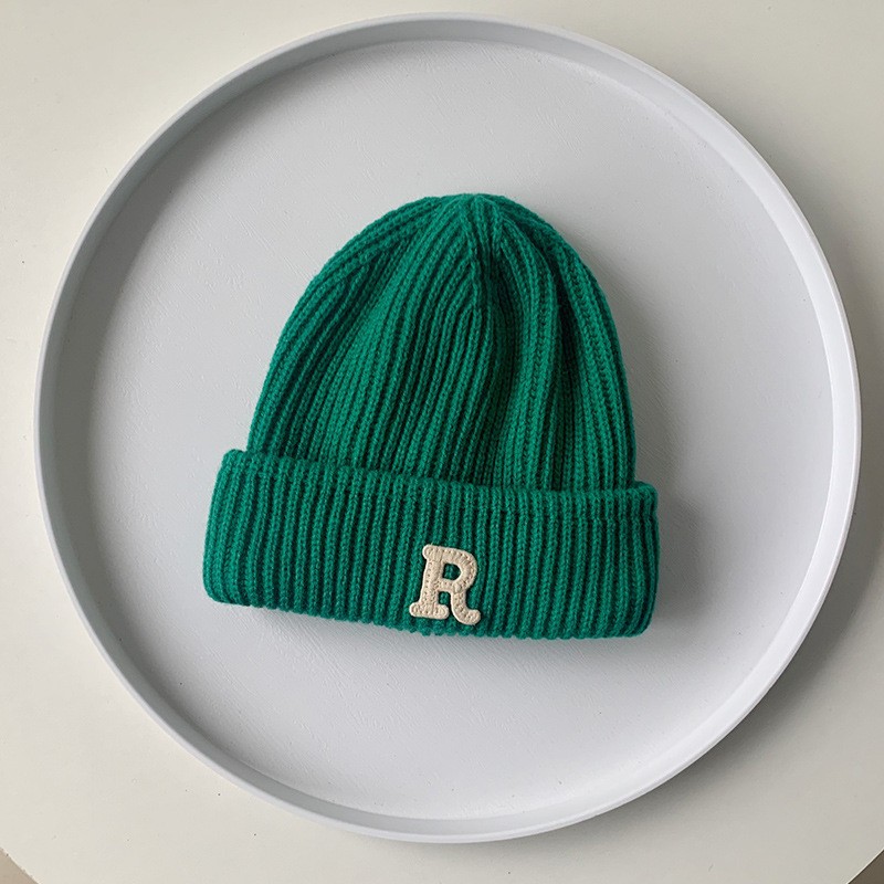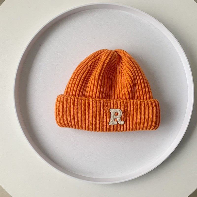 Unisex Autumn and winter children's woolen hats Boys and girls fashion letter melon hats large children's candy-colored knitted hats trend