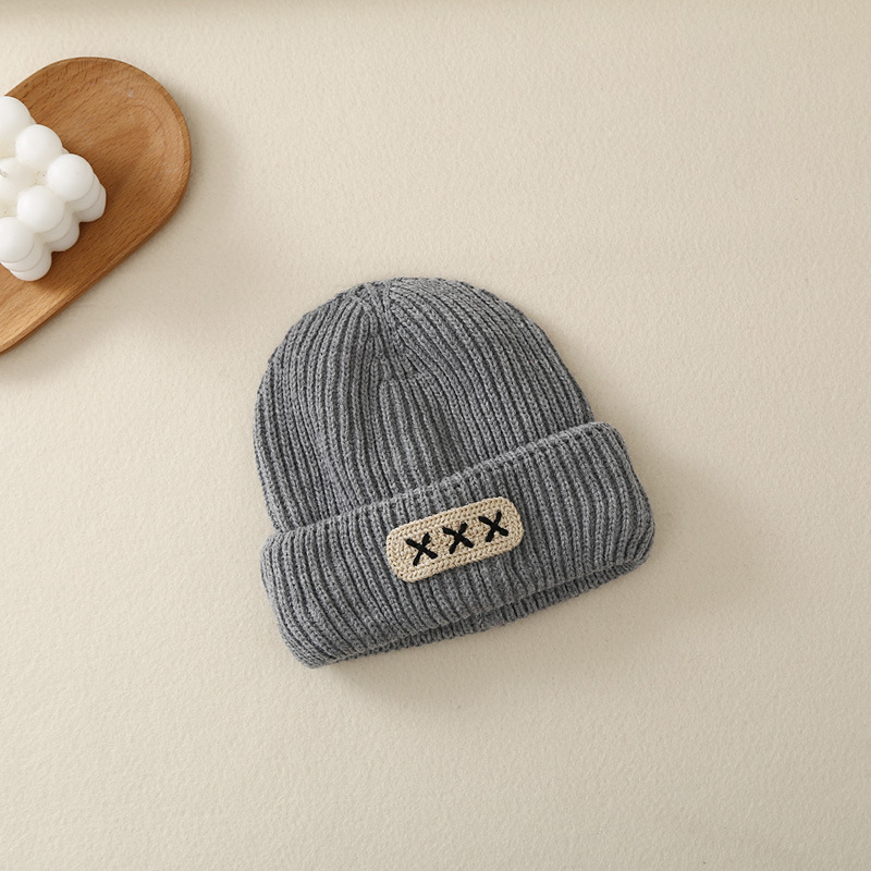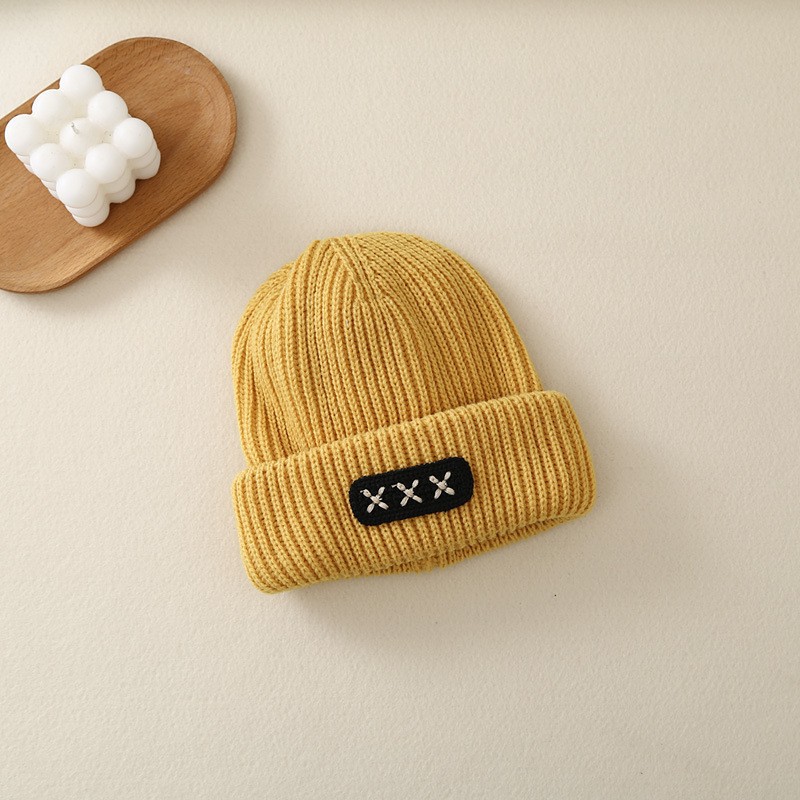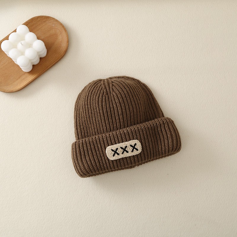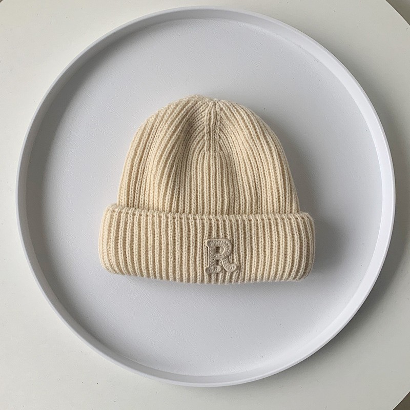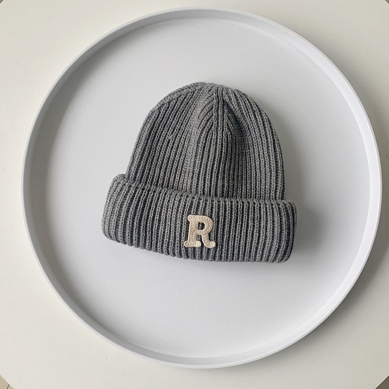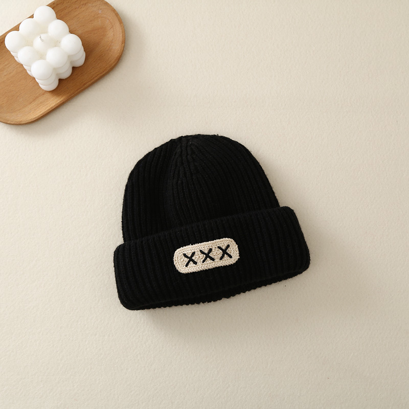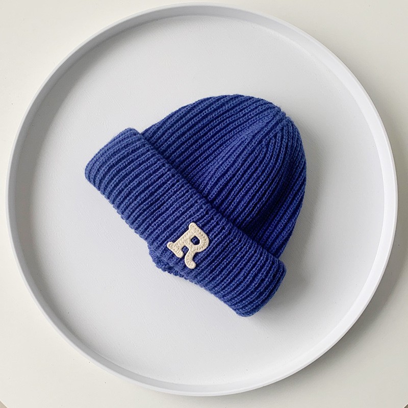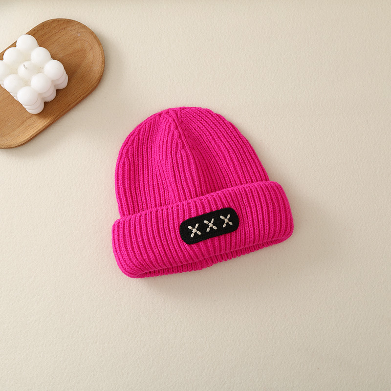 Unisex Autumn and winter children's woolen hats Boys and girls fashion letter melon hats large children's candy-colored knitted hats trend
