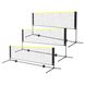 Portable Badminton Net Set Our multi-sport portable net is more than just a badminton net; it's also suitable for pickleball, tennis, soccer tennis, and casual volleyball. Enjoy unlimited backyard fun with our versatile training net set. With adjustable heights from 3 ft to 5.1 ft, you can easily switch the net from high to low, with even lower settings for pickleball, tennis, and soccer tennis. Our foldable pickleball net set is made of high-quality material, perfect for indoor or outdoor use. The iron tubes feature slotted foam for easy storage and bump protection, ensuring durability. Set up in 5 minutes or less. No stakes or tools needed, even kids can join in! All parts are connected with flexible bungee cords, so there's no risk of losing any pieces. The portable bag allows you to use the net not just in the backyard/home but also to take it to the pool, beach, or park. It folds compactly and takes up minimal space.