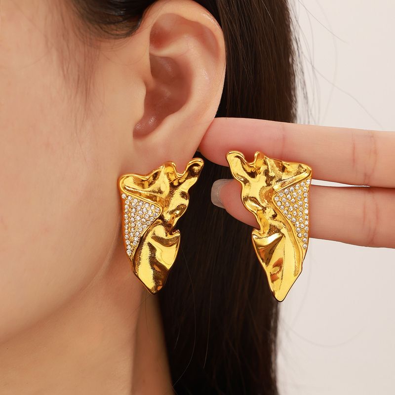Vintage Style Pleated Diamond Studded Earrings With A Sweet And Cool Temperament, Made Of Titanium Steel And Irregular Earrings
