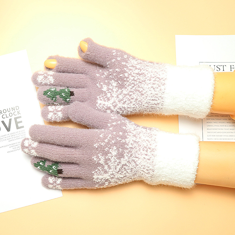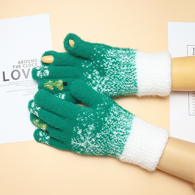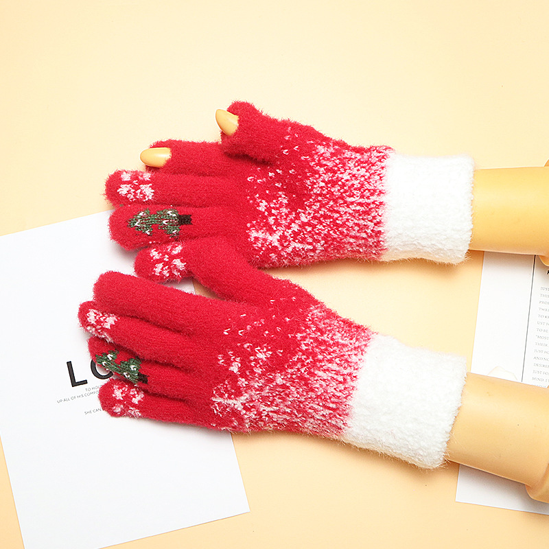 Warm gloves ladies winter dew finger touch screen with wool thickened knitting New Year Christmas red Korean version wholesale