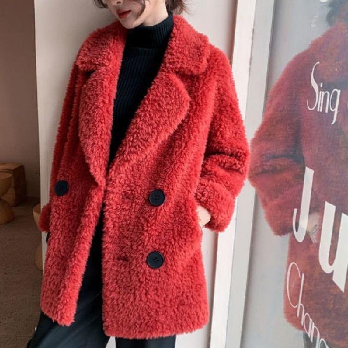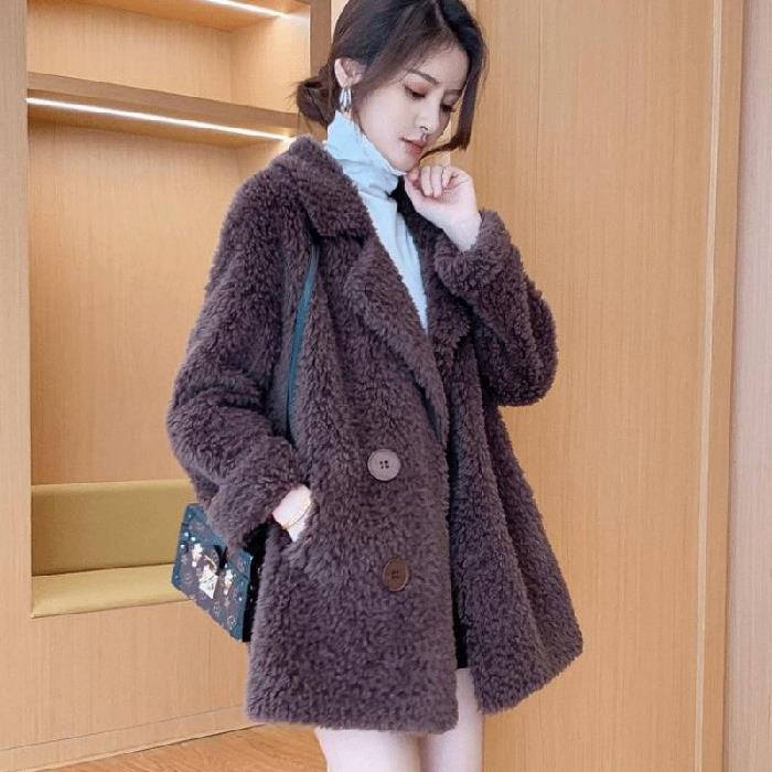 Winter mid-length fleece coat for women 2023 new suit collar lambswool fur integrated granular fleece coat