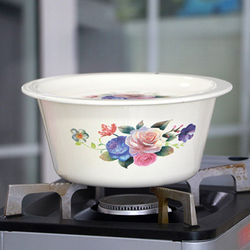 Enamel Bowl with Lid Porcelain Bowl Lid Basin Old-fashioned Lard Porcelain Basin Enamel Soup Basin Enamel Bowl