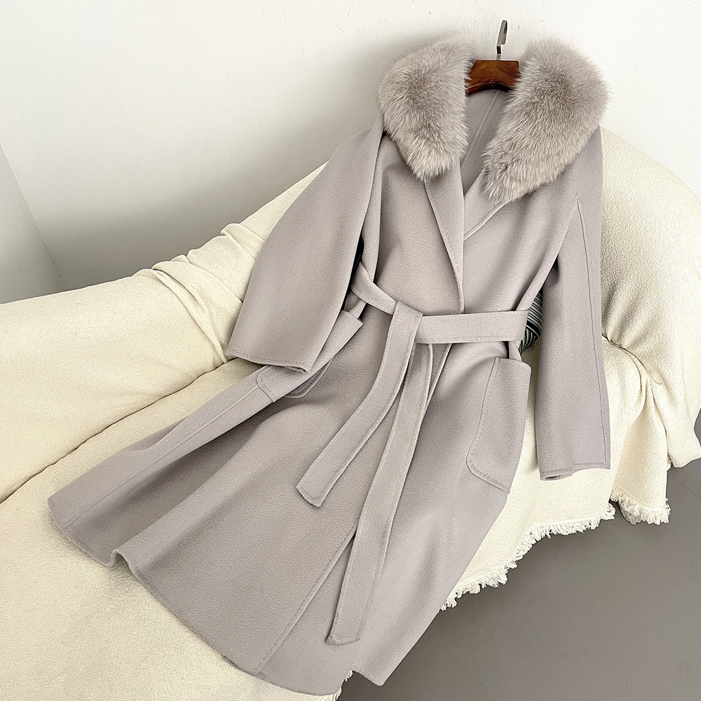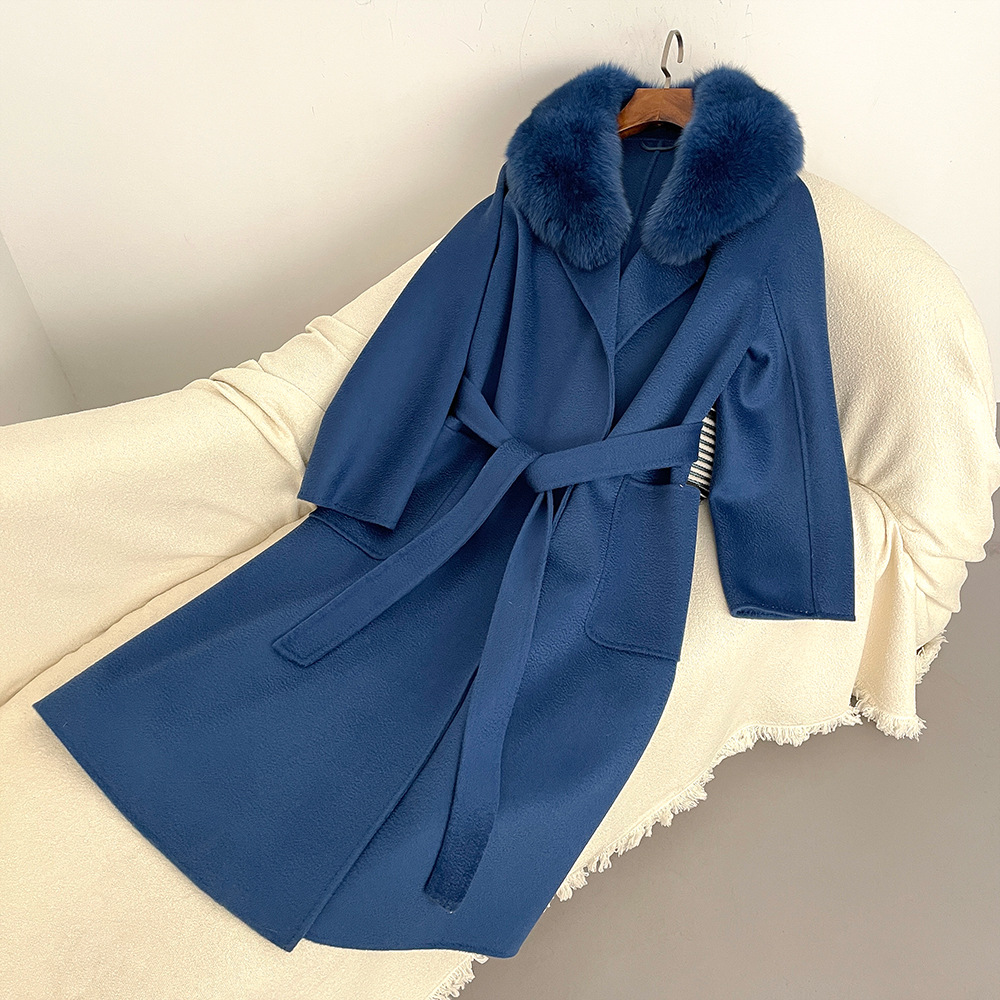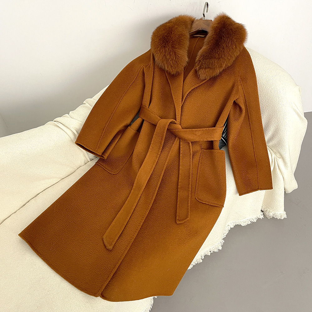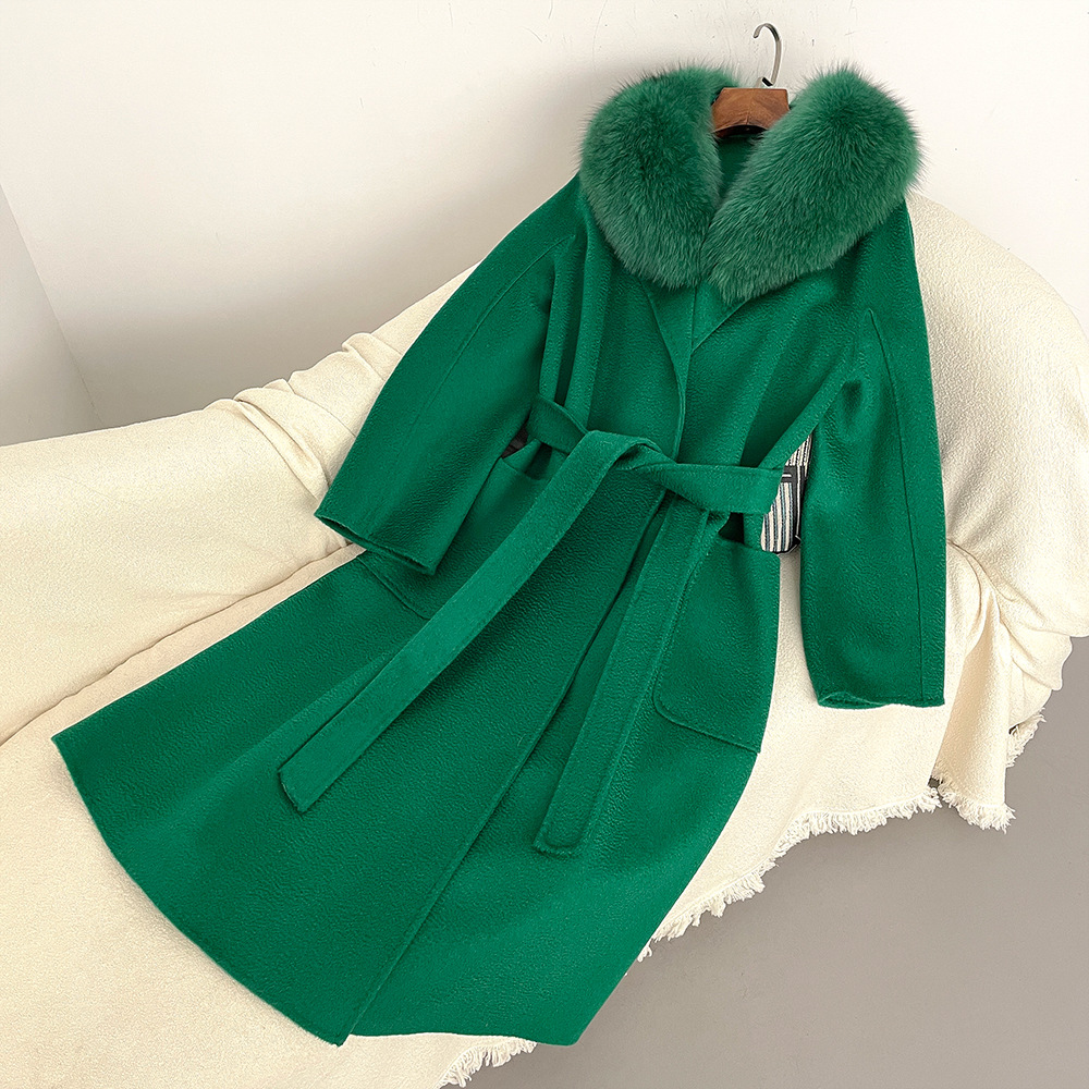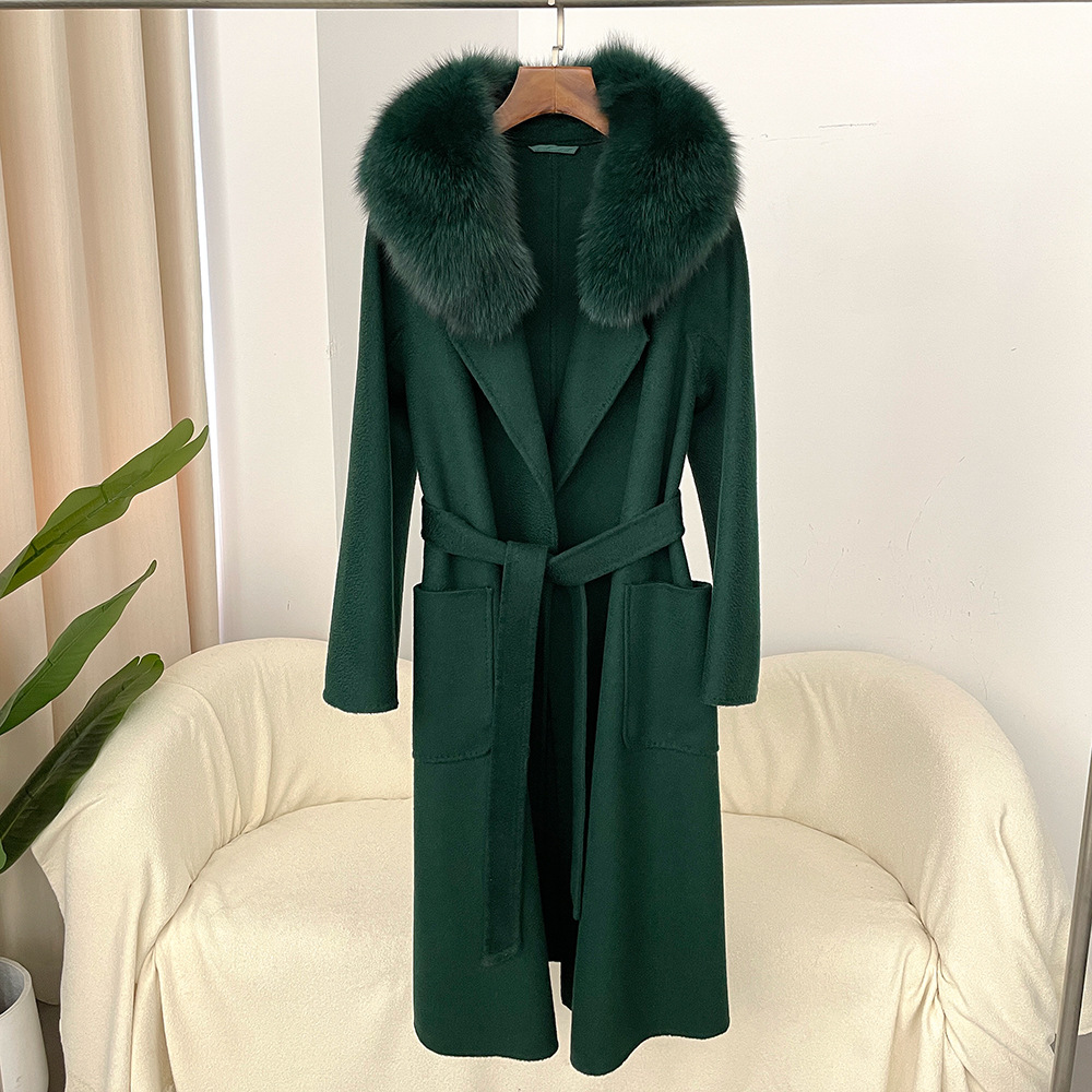 Women's Clothing Autumn and winter woolen coat long style high quality water ripple double faced wool coat women's high end cashmere coat