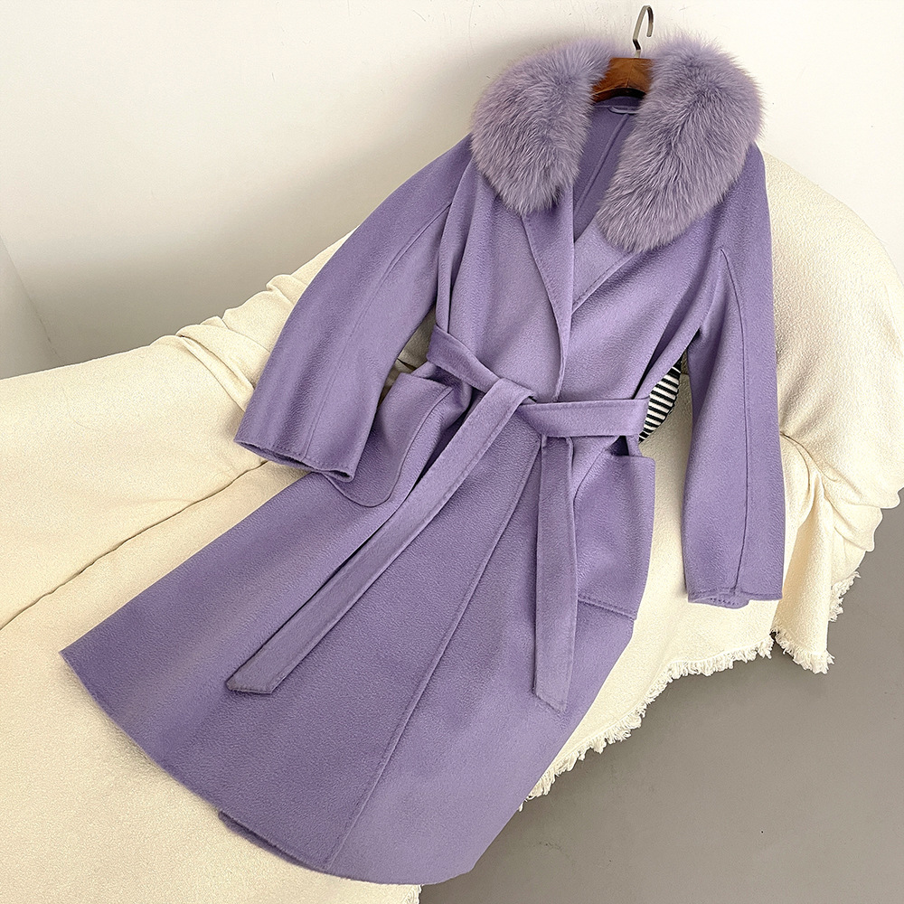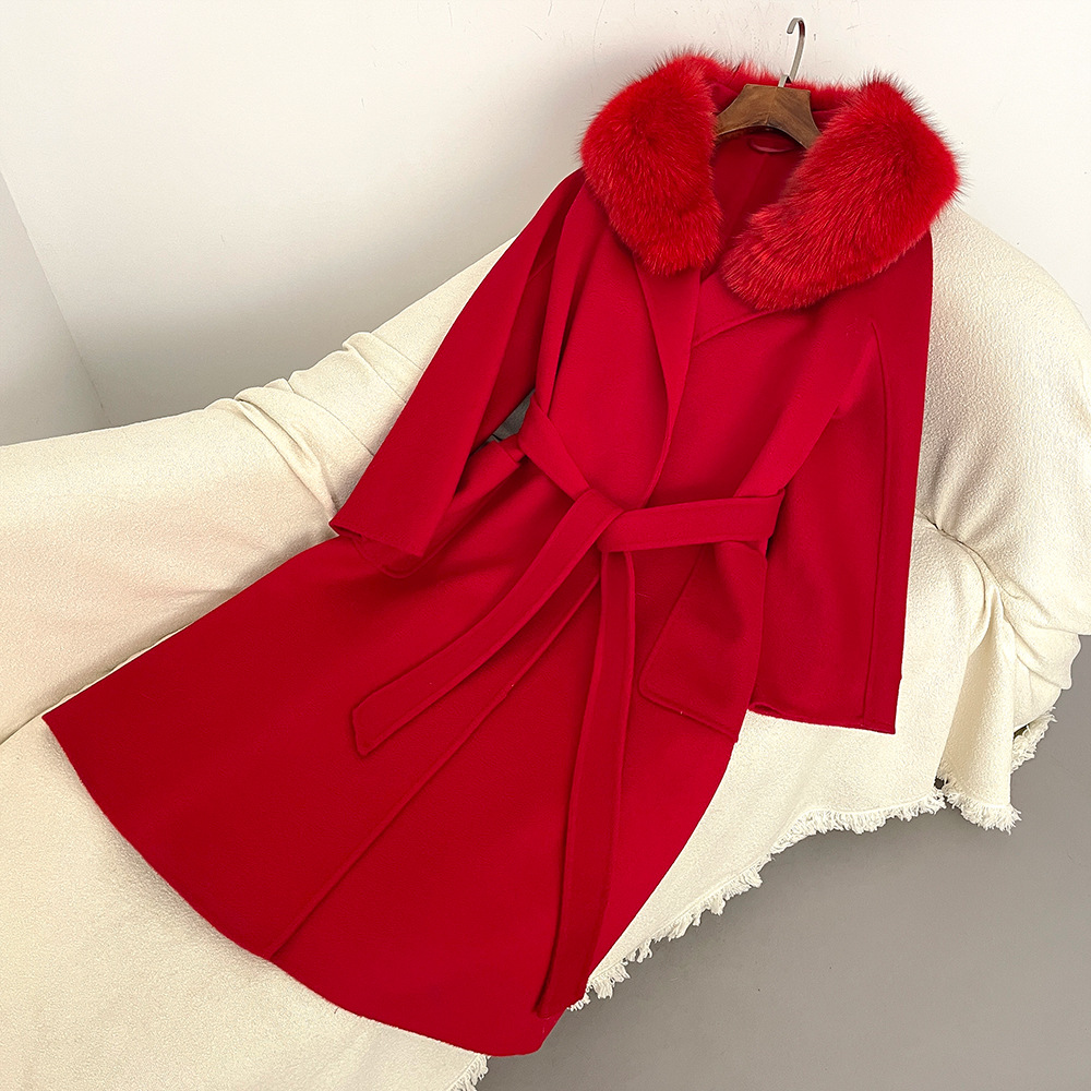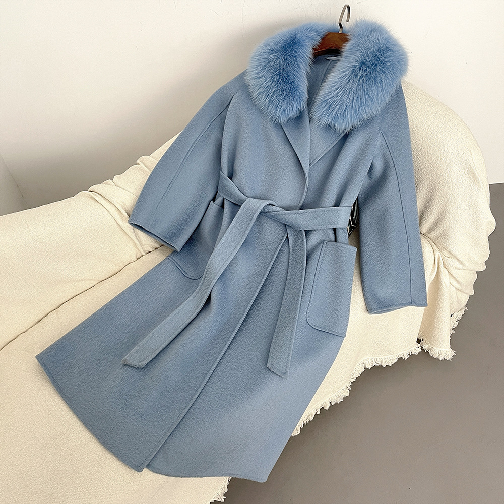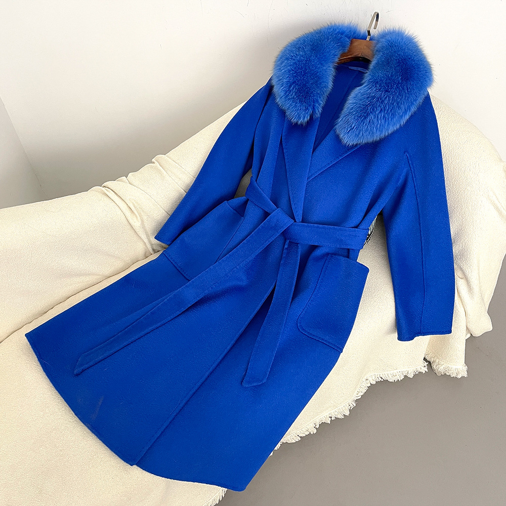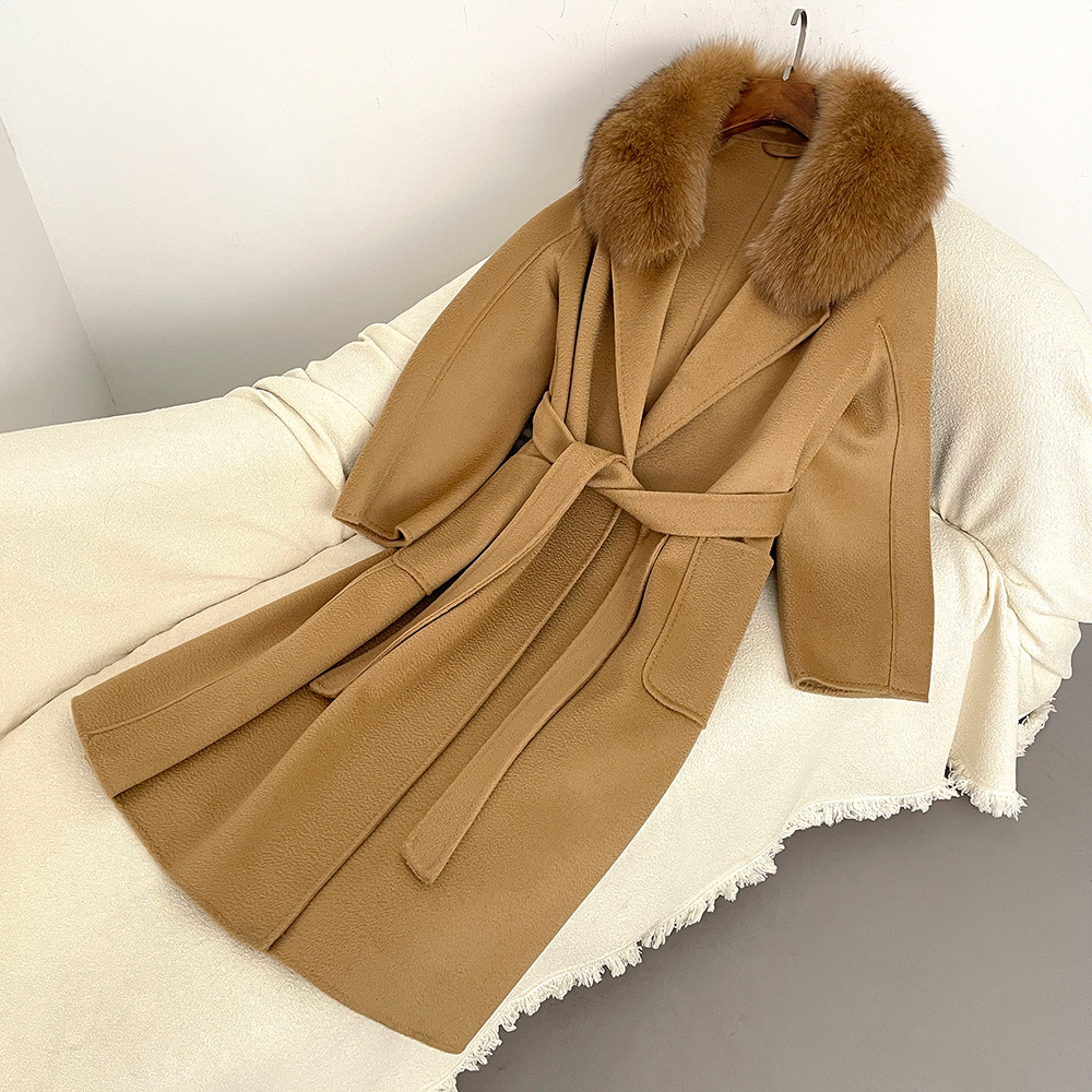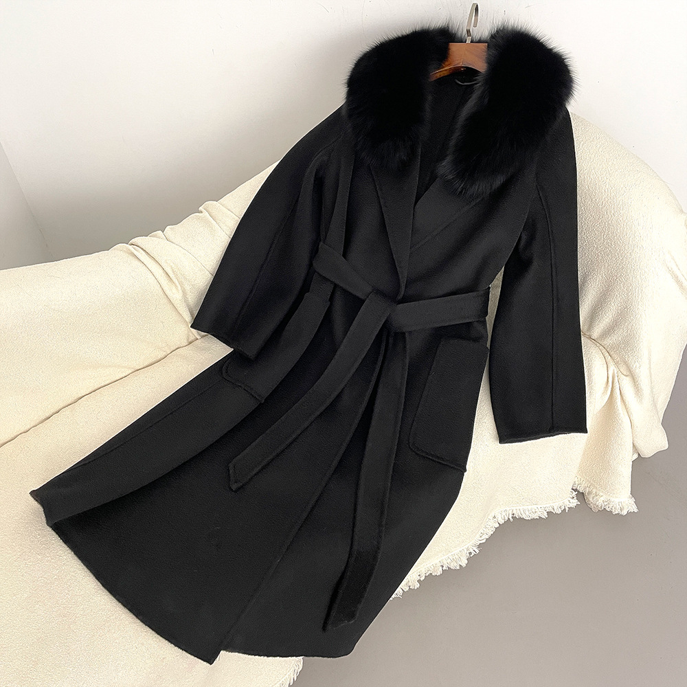 Women's Clothing Autumn and winter woolen coat long style high quality water ripple double faced wool coat women's high end cashmere coat