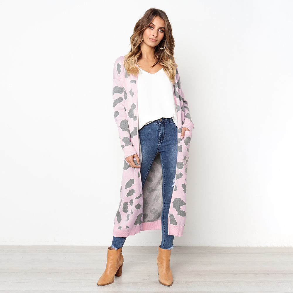 Women's Clothing leopard print sweater loose mid length knitted cardigan top one piece drop shipping