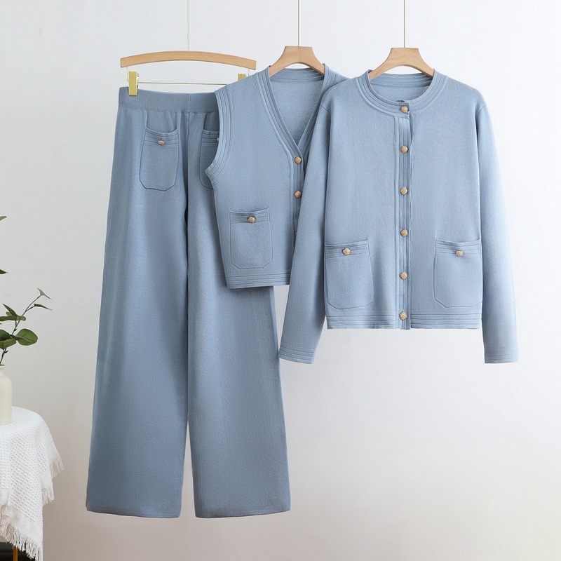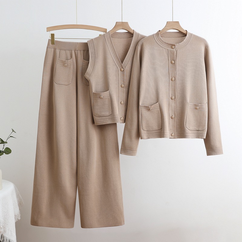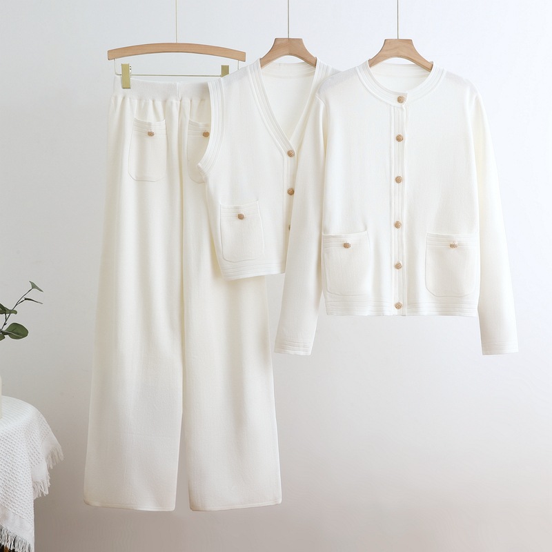 Women's Clothing Loose and versatile vest, wide leg pants, buttoned cardigan, three piece suit