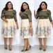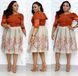 Women's Clothing Printing And Solid Color One Shoulder Lotus Leaf Sleeves Waist Cinching A Line Skirt With Same Color Belt
