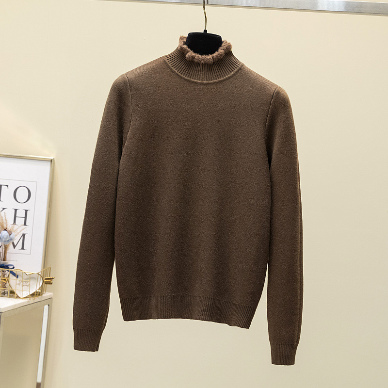 Women's Clothing Solid color large version half turtleneck plus thick warm inner wear knitted veet long sleeved pullover