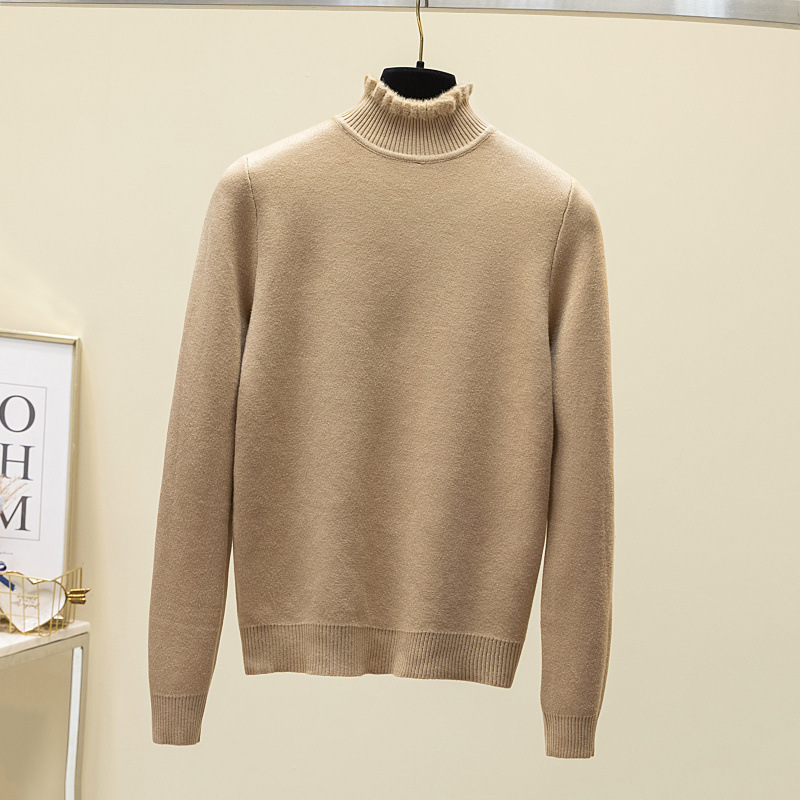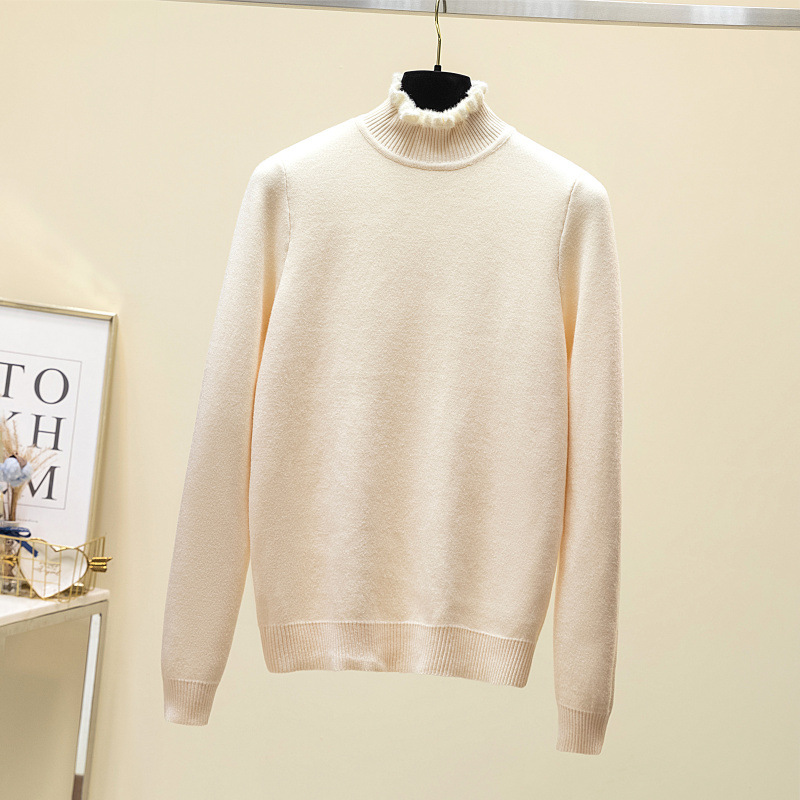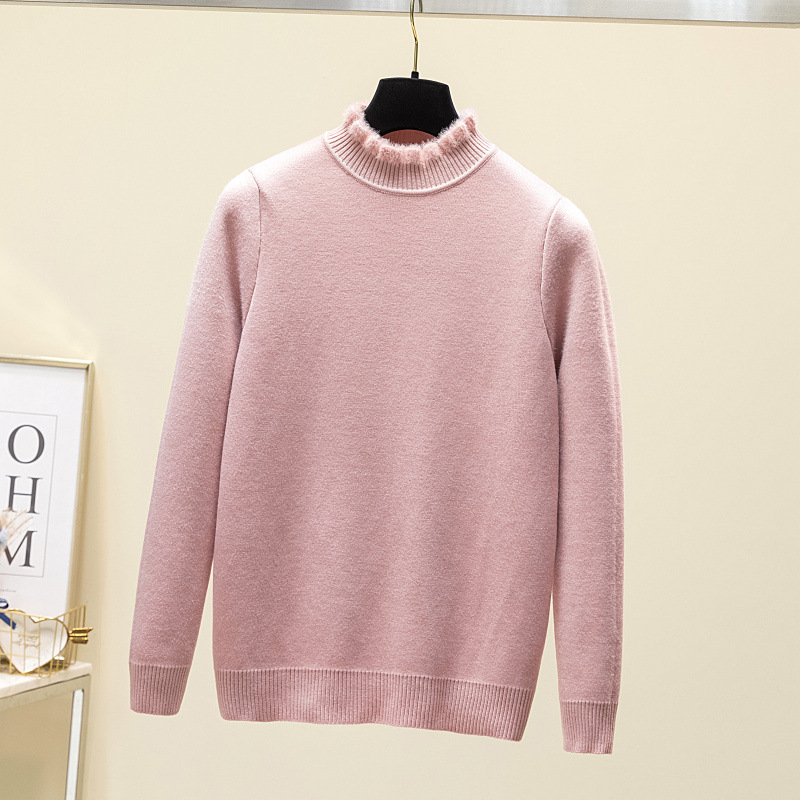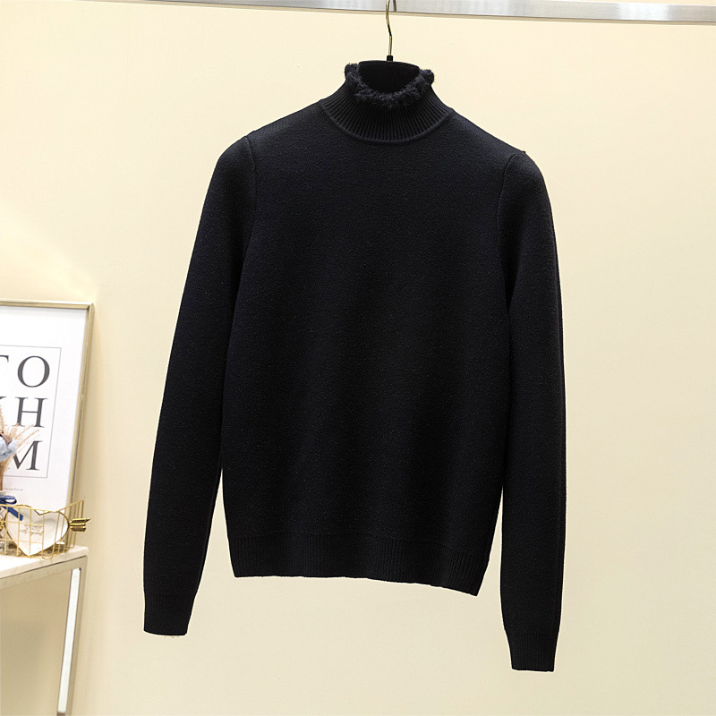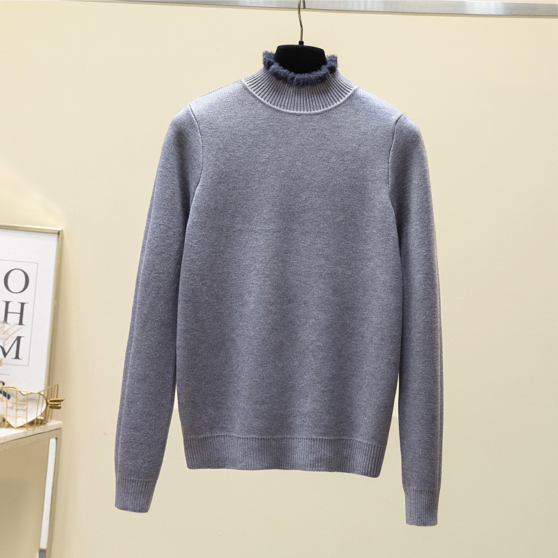 Women's Clothing Solid color large version half turtleneck plus veet thick warm inner wear knitted sweater veet long sleeved pullover sweater