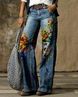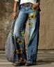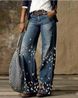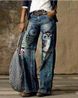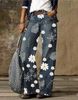 Women's clothing twill ladies jeans printed jeans thin casual pants