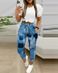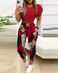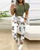 women's clothing two-piece short-sleeved commuter print drawstring trousers suit