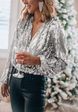 Women's fashionable V-neck long-sleeved party sequined tops for women