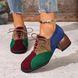 Women's High-heeled Casual Shoes With Color-blocking Design, Artistic And Retro Style, Lace-up Style Women's Shoes