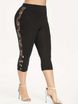Women's large size leggings, lace hollow splicing design, slim elastic waist, three-point leggings for outer wear