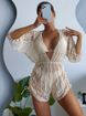 Women's mesh waist one-piece swimsuit high waist print drawstring three-piece bikini
