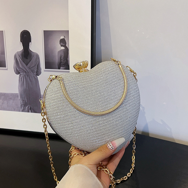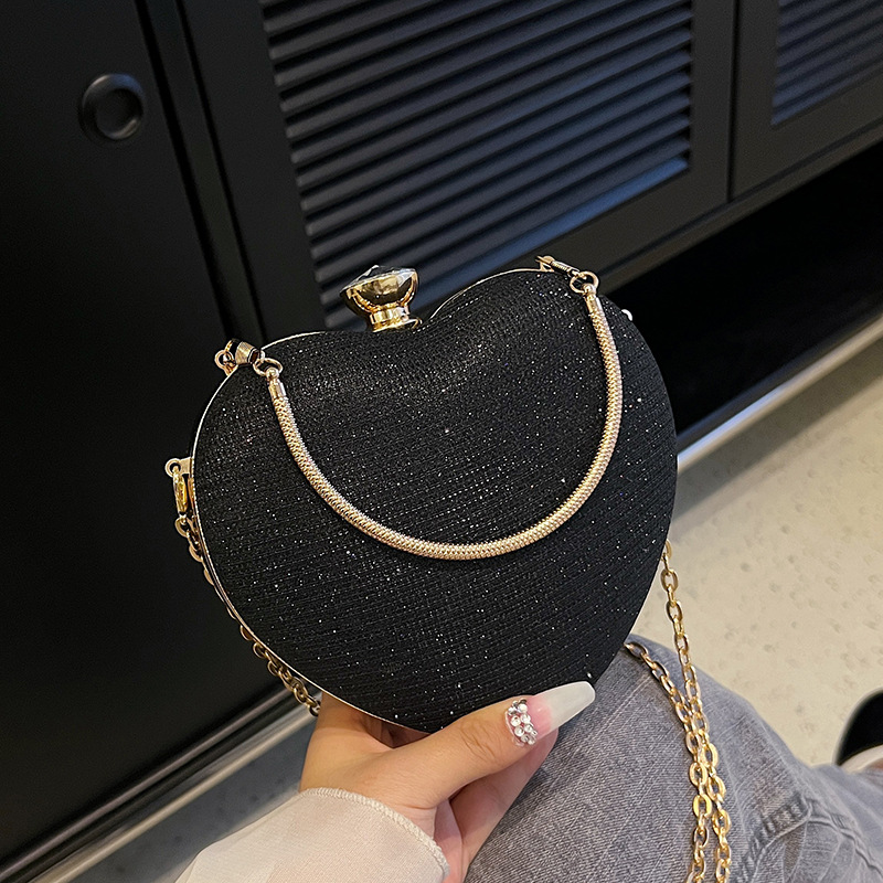Bag Women's Bag New Evening Bag Heart shaped Chain Bag Fashion Peach Heart Bag Diamond Inlaid Metal Handheld Diagonal Straddle Bag