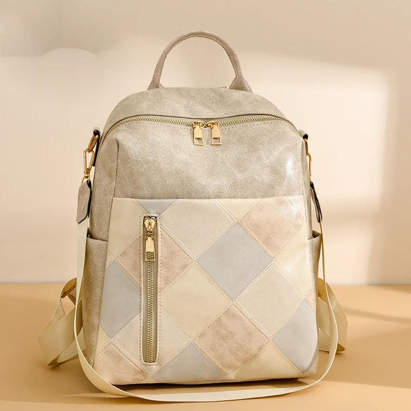 Women's New European And American Retro Women's Backpack PU Soft Leather Fashionable Diamond Grid Multifunctional Travel Backpack