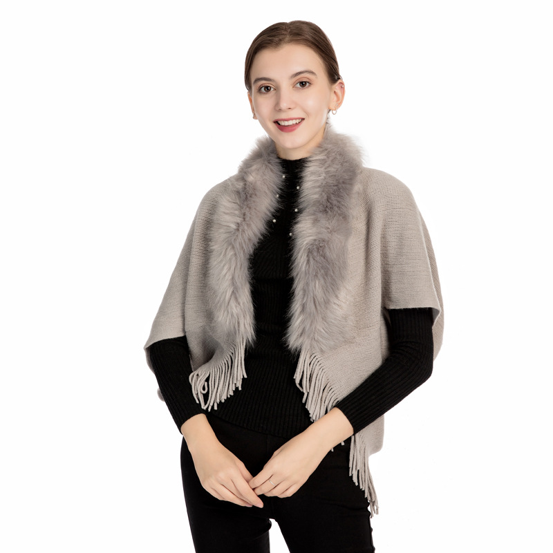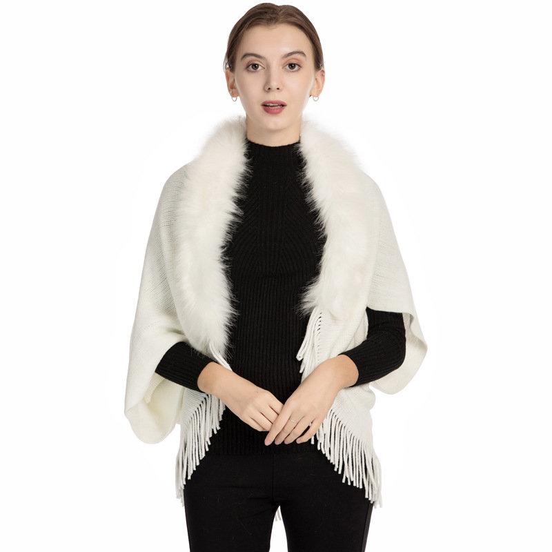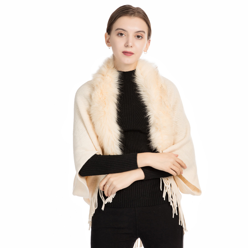 Wool collar warm monochrome knit set acrylic tassel cape cape