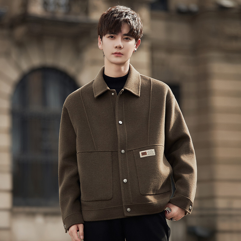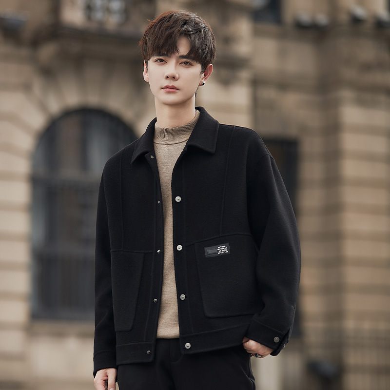 woolen jacket men's autumn and winter non cashmere double-sided woolen short wool jacket men's top