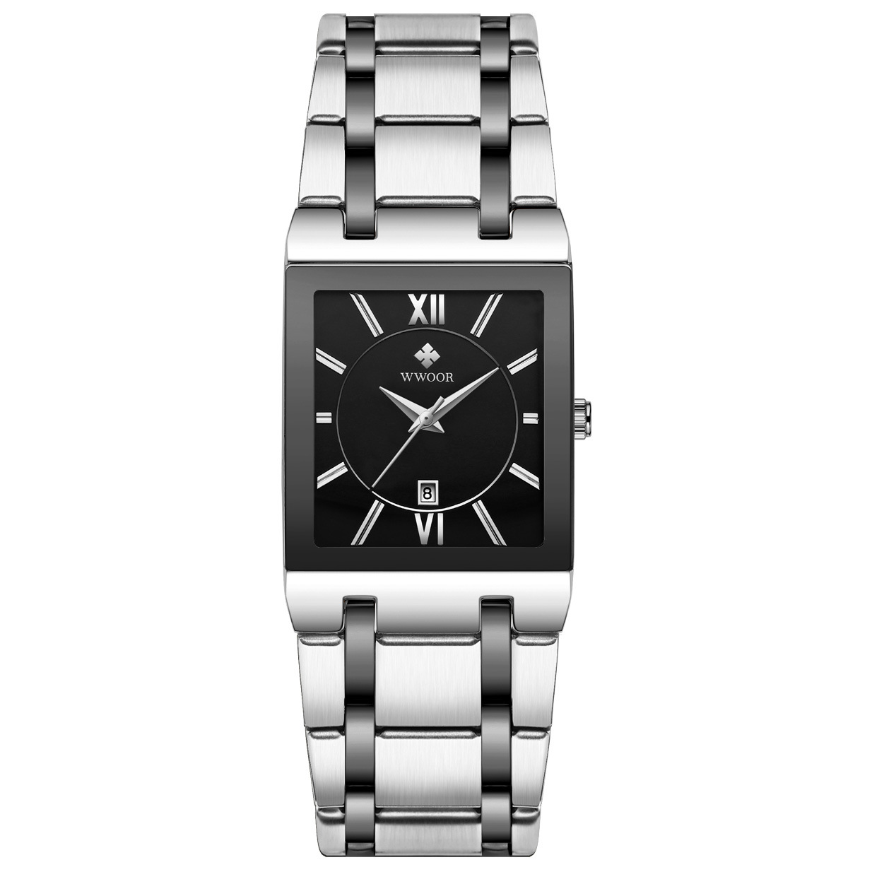 WWOOR Square Men's Casual Wristwatch Steel Band Quartz Watch Hand Date Electronic Watch Exquisite Small and 8858