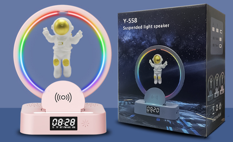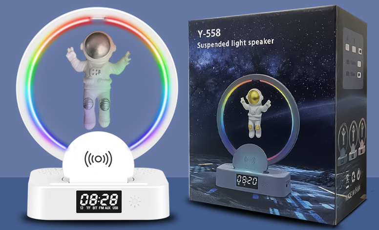Y-558 Magnetic Levitation Astronaut Bluetooth Speaker Clock Space Man Sound RGB Light Computer Subwoofer Gift