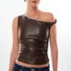 Y24TP647 Women's Autumn/Winter Twisted Strap Off Shoulder Leather Folded Short Open Umbilical Top T-shirt